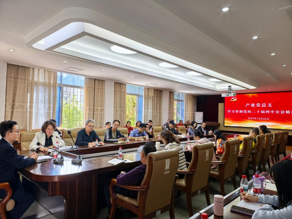 12月24日,产业党总支在霞山校区干训三楼会议室召开学习贯彻党的二十届四中全会精神宣讲会。学校党委理论宣讲团成员、马克思主义学院巩建华作专题辅导报告,产业党总支书记吴少文主持会议。全体党员、发展对象、入党积极分子以及业务骨干等30人参加学习。